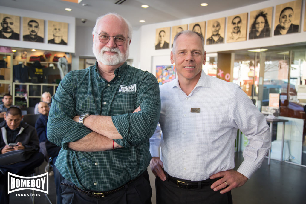 If you don’t know the story, here’s a summary. Forty years ago, Father Boyle began serving as the priest of the poorest Catholic church in Los Angeles. Eight gangs were in a constant and deadly battle for control of the neighborhood. Father Boyle began to seek a way to become a transforming presence and offer a path of hope for gang members who wanted to find a new life. He began living and walking alongside the people in the neighborhood. He soon recognized that creating meaningful job training and employment would be critical. “At the time, law enforcement tactics of suppression and criminal justice policies of mass incarceration were the prevailing means to deal with gang violence. But where others only saw criminals, Father Greg saw people in need of help. Today, Homeboy Industries is the largest gang intervention, rehabilitation and re-entry program in the world, welcoming thousands through our doors each year.[i]