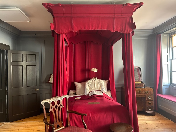 A sign says: “Here Handel could find privacy and tranquility in his sometimes busy home…It is here that Handel slept, dreamt, recovered from illnesses and wrapped up warm amidst some of the coldest winters on record…He never married and we know nothing about his romantic liaisons while he lived here…In this bedroom, his sanctuary, he may have drawn his last breath.”
