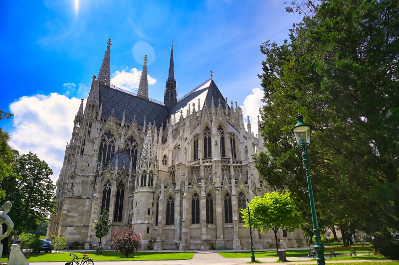 On our last day in Vienna this past September, we decided to visit an impressive sight we had been passing every day: the Votivkirche, or ”Votive Church.”[i] Seeing its tall spires and ornate towers, I assumed it was an ancient Gothic cathedral. Upon entering, we discovered it is less than 150 years old — a “neo-Gothic” structure completed in 1879. The building is 325 feet high (second highest peak in the city) and features 78 stained glass windows; when you enter, it feels vast, mysterious and intriguing.