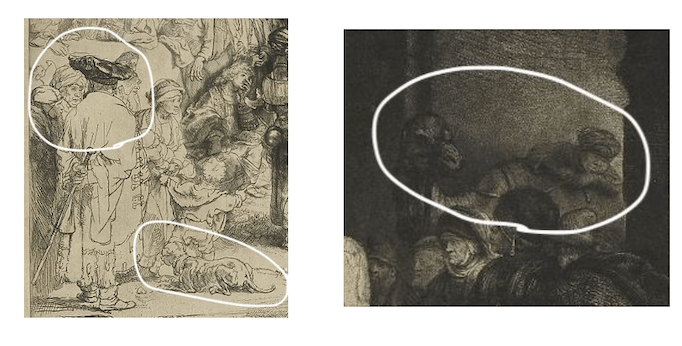 Over the years, I’ve done a variety of presentations exploring the way Rembrandt portrays Biblical scenes. Time and again, I’ve been fascinated by the surprising ways he imagines and creates visual details. One example is his apparent fondness for dogs.